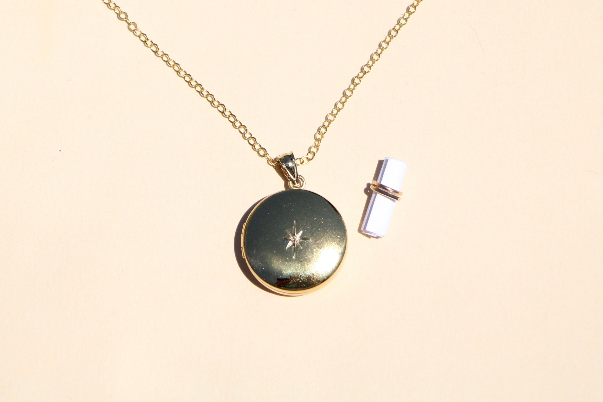 The locket makes an ideal keepsake, perfect as a gift. The locket holds a tiny hand-rolled intention scroll and can also hold two photos.